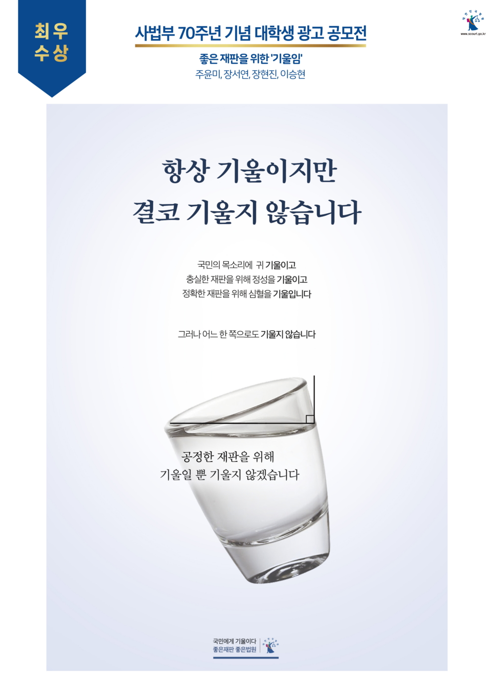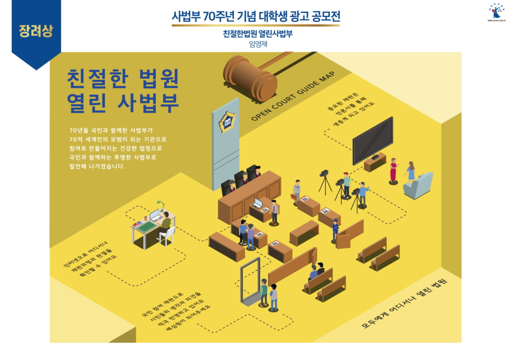 ¢ºÀÛǰ ¼³¸í: Æ÷½ºÅÍÀÇ ÁÖÁ¦¸¦ Á¤º¸ Àü´Þ¿¡ Àǹ̸¦ µÎ°í ÀÛ¾÷À» Çß½À´Ï´Ù. »ç¹ýºÎ°¡ ±¹¹Î¿¡°Ô ´Ù°¡°¡±â À§ÇØ ¾î¶² Ȱµ¿À» Çϰí ÀÖ´ÂÁö º¸¿©ÁÖ¸é¼ Âü¿©¸¦ À¯µµÇÏ°Ô ÇÏ´Â ³»¿ëÀ» ÁÖ·Î ´ã¾Ò½À´Ï´Ù. ÀÌ Á¤º¸¸¦ ´ãÀ» ¶§ Àç¹Ì¸¦ ´À³¥ ¼ö ÀÖ°Ô »óºÎ¿¡ ¹ýºÀ°ú ¹ýÁ¤ÀÇ Å©±â¸¦ ±ØÀûÀ¸·Î Ç¥ÇöÇÏ¿© ¹Ì´Ï¾îóó·³ ÀÛ¾÷ÇÏ¿´½À´Ï´Ù. 70³âÀ» 70¾ï Àα¸¿Í ¿¬°áÇÏ¿© ¼¼°è¿¡ ¸ð¹üÀûÀÎ ¹ýÁ¤ÀÌ¸é¼ ±¹¹Î°ú ÇÔ²²ÇÏ´Â ¹ýÁ¤ÀÌ µÉ °ÍÀÓÀ» °Á¶Çß½À´Ï´Ù. ¡Ø½ÇÁ¦ ¹ýÁ¤¿¡¼´Â ¹ýºÀÀ» »ç¿ëÇÏÁö ¾Ê½À´Ï´Ù.
