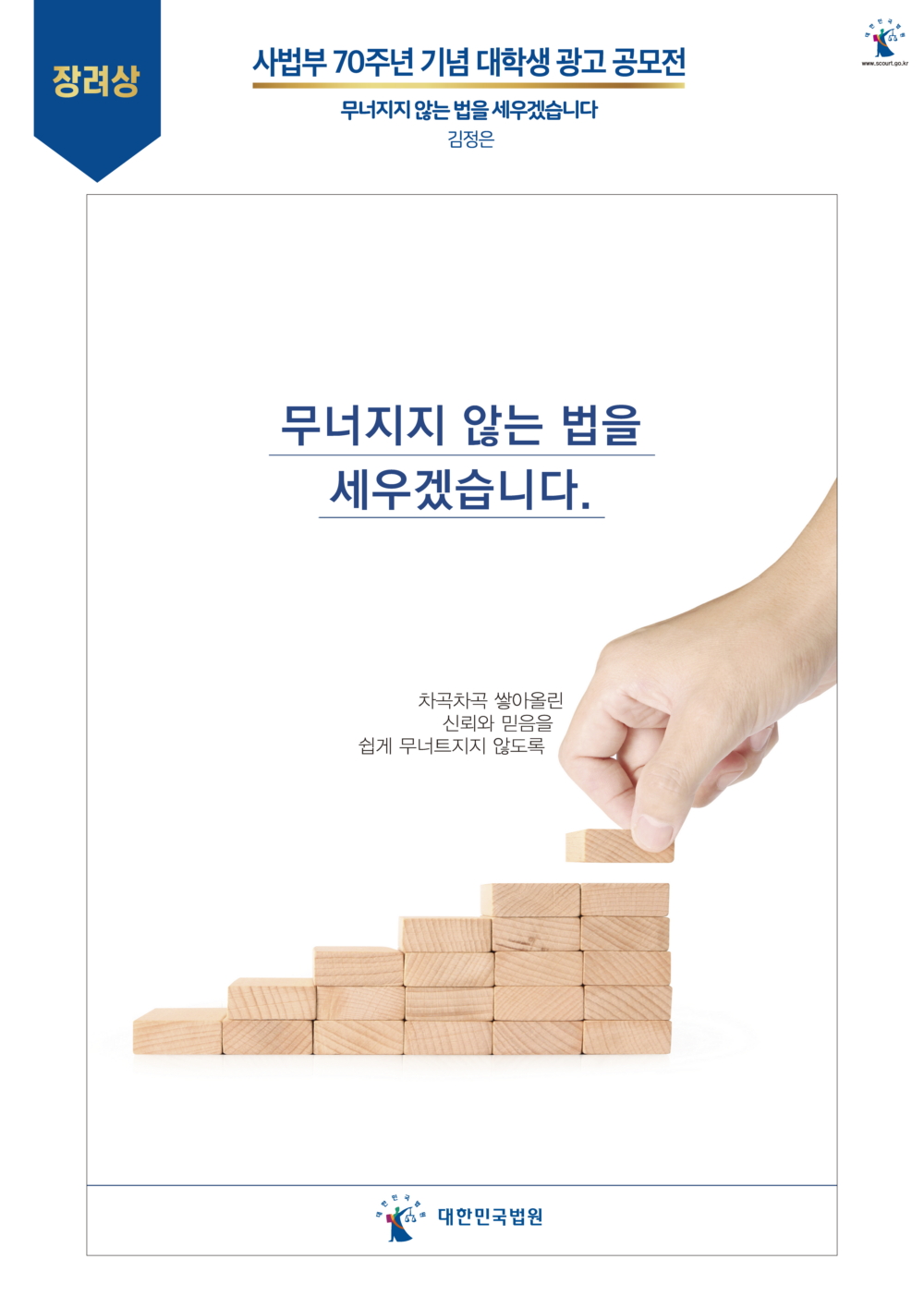 ¢ºÀÛǰ Á¦¸ñ: ¹«³ÊÁöÁö ¾Ê´Â ¹ýÀ» ¼¼¿ì°Ú½À´Ï´Ù. ¢ºÀÛǰ ¼³¸í: Â÷°îÂ÷°î ½×¾Æ¿Ã¸° ±¹¹ÎÀÇ ½Å·Ú¿Í ¹ÏÀ½À» ½×¾Æ¿Ã¸° ³ª¹« µµÇü¿¡ ºø´ë¾î Ç¥ÇöÇÏ¿´½À´Ï´Ù. ¹ÏÀ½°ú ½Å·Ú¸¦ ưưÇÏ°Ô ½×¾Æ¿Ã·Á ½±°Ô ¹«³ÊÁöÁö ¾ÊÀ» °ÍÀ̶ó´Â ¸Þ½ÃÁö¸¦ Àü´ÞÇÏ·Á ÇÏ¿´½À´Ï´Ù.